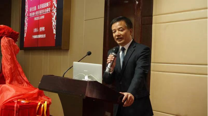 的信任和支持,表示作为海洋法学研究会的牵头单位和依托单位,将倍加珍惜机会,大力支持研究会的建设和发展,努力为研究会开展工作提供必要的条件保障,希望海洋法研究会在广东省法学会领导下,深入贯彻习近平总书记关于建设海洋强国重要论述和视察广东重要讲话、重要指示批示精神,认真遵守章程,创新工作方式,聚焦海洋法治理论研究与实践热点难点问题,为粤港澳大湾区建设、为海洋强省建设,为维护国家海洋权益,建言献策,贡献智慧和力量。