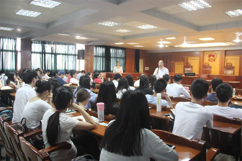 在主楼模拟法庭组织本学期院长接待日。学院领导班子、全体政治辅导员、教务员、各学生班班长共80多人参加。