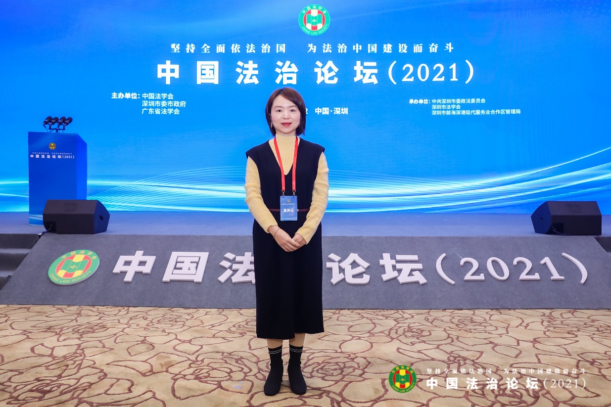 12月23日,我校朱古力av 副教授张艾妮应邀参加了在深圳举行的由中国法学会、深圳市委市政府、广东省法学会主办的中国法治论坛(2021)。论坛主题为“坚持全面依法治国 为法治中国建设而奋斗”。论坛紧扣法治中国建设实践需求,精心设置“法治中国建设背景下的粤港澳大湾区法治建设”“构建新发展格局的法治保障”和“建设法治先行示范城市的理论与实践”等三个单元共9个议题,邀请来自国内外近30名法治建设各领域著名专家学者,通过线上线下相结合方式深度参与交流。