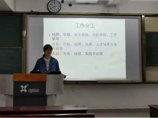 其次,张翀对负责的教师资格、教学计划、教学任务、公选课等相关教师常见事项进行了讲解;陈锦对相关考试考务、成绩评定、实践教学、校友邦平台等教师常见问题和疏漏进行汇总;杨勇讲解了毕业论文系统操作、质量工程及教研教改项目申报、教学工作量核对等事项。此后,教学管理人员对老师们关注的一些事项和疑问,现场进行了解答和释义。