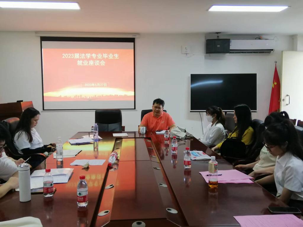 以毕业生回校参加论文答辩为契机在广学楼805召开2023届法学专业毕业生座谈会,进一步明确就业工作的关键环节和具体举措。
