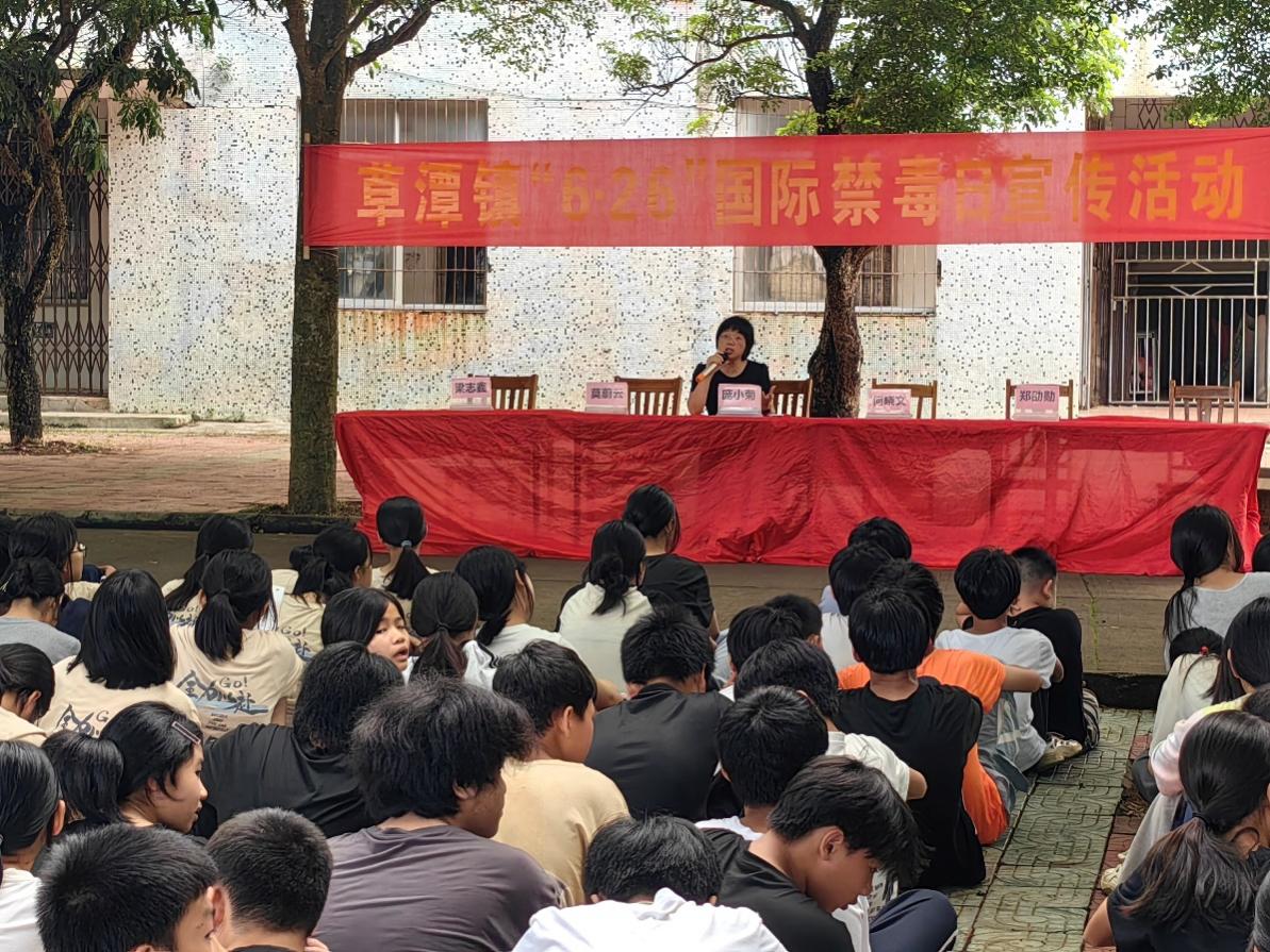 6月26日国际禁毒日。为进一步加强未成年人毒品预防教育,提升学生们的禁毒意识和心理健康水平,2024年6月25日,遂溪县草潭镇镇政府邀请朱古力av 庞小菊副教授到遂溪县草潭镇下六中学七年级、八年级学生开展“珍爱生命、远离毒品”的禁毒普法宣传讲座。