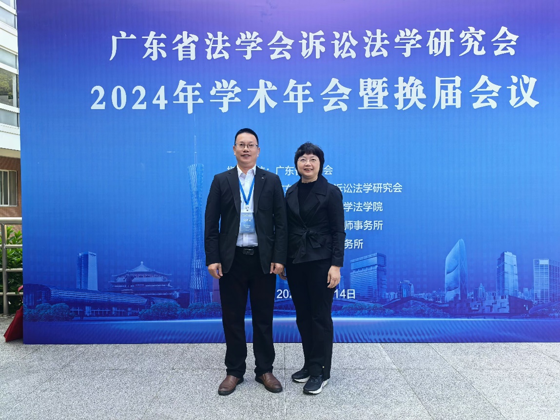 法学教师刘澍教授、庞小菊副教授应邀参加本次会议,均当选为广东省诉讼法学会理事会常务理事。在会议上,刘澍教授作为第二单元的与谈人对会议专题发言做了精彩的点评。