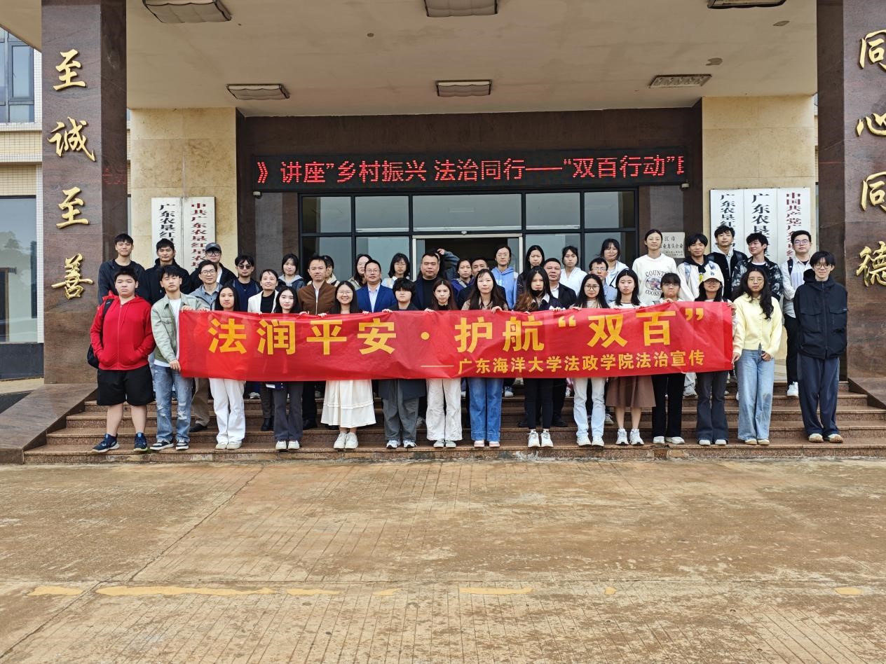 副院长刘澍教授、实践教学中心主任周立波同志、刑事法学系主任张科副教授、吴运时博士、办公室主任宁乐添同志和法学2022级8班的所有同学,与湛江市徐闻县司法局莫光智副局长、徐闻县政法委副书记莫小维、红星农场副总经理周建华及相关10余名同志一起参加了此次活动。