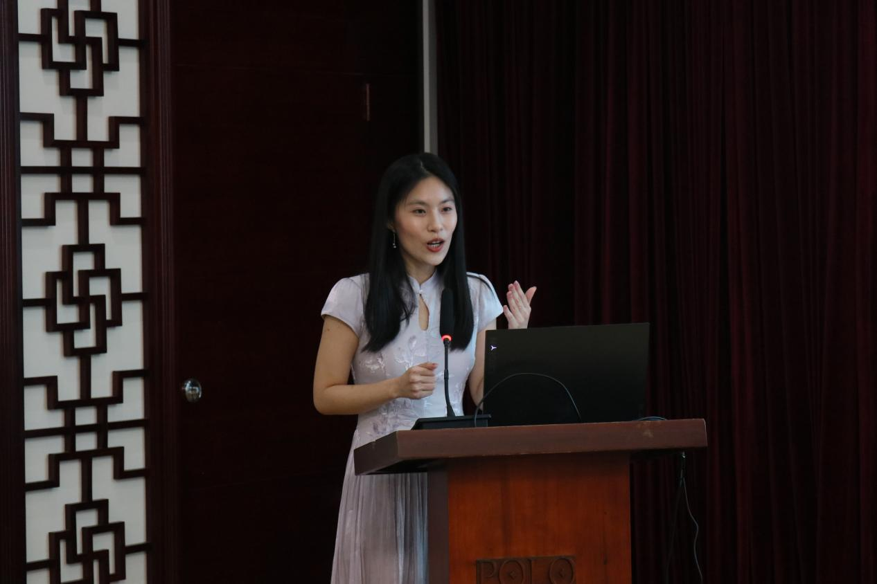 郭萍会长主持海洋法学主旨报告环节,两位特邀嘉宾围绕海洋经济法治前沿议题展开分享。