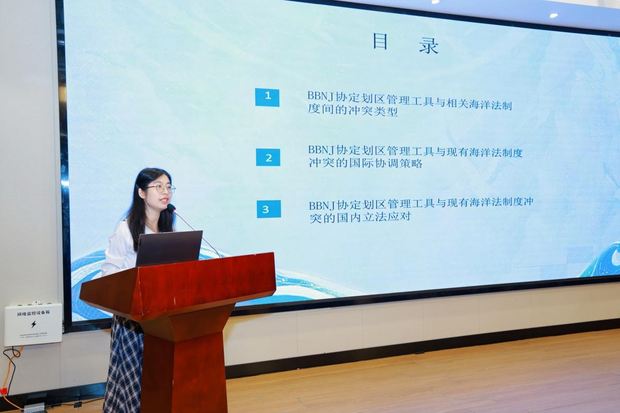 刘澍副院长获聘中国太平洋学会自然资源法学研究分会第二届理事会常务理事,莫旻丹副主任和新进教师江婷烨博士获聘第二届理事会理事。在9月27日举行的研讨会上,江婷烨老师围绕BBNJ协定相关内容进行了会议发言,发言题目为《论BBNJ协定划区管理工具与相关海洋法制度冲突的国际协调与国内应对》。