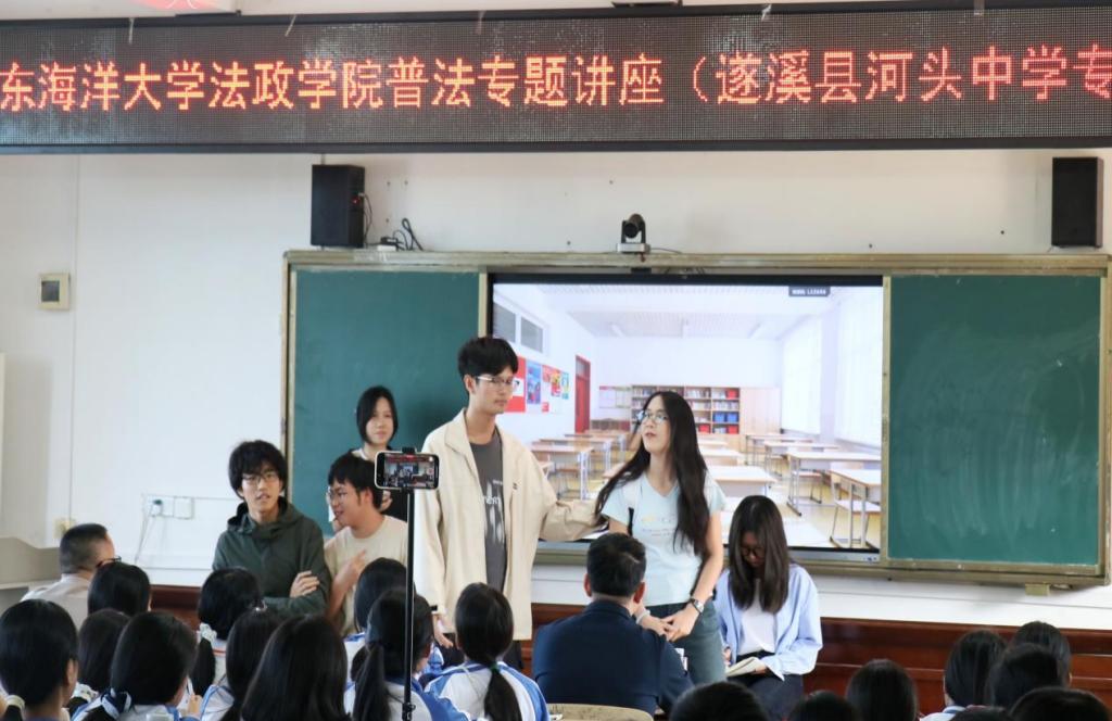 话剧队演绎了原创反欺凌短剧,以情景再现方式引导学生掌握依法自护方法。现场还设置了法律知识互动环节,学生踊跃参与,气氛热烈。活动的最后,湛江市遂溪县河头中学的李智校长登台致辞,希望同学们能够牢记所学,增强自我保护意识,共创安全和谐校园。