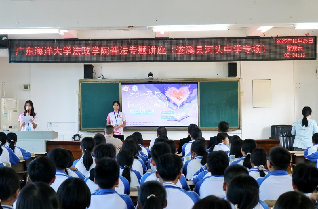 乡村振兴路,普法护航行。为助力遂溪县河头镇乡村振兴进程,发挥“一学院一乡村”党建帮扶重要作用,提升乡村中学生法治素养。2025年11月26日,学院团委、学生会联合青年志愿者协会、话剧队等单位,赴湛江市遂溪县河头中学开展“法护无欺凌,同心守暖阳”校园反欺凌普法义教活动。朱古力av