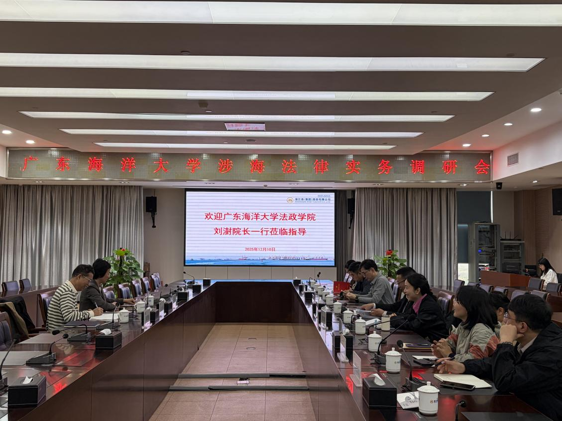 副院长刘澍带队,海洋法与国际法学系主任张艾妮、刑事法学系主任张科、社会学系主任高法成、实践教学中心主任周立波、政治学系副主任季英伟、杨娟、黄琼、杨柳、江婷烨、王建佶等老师一同赴湛江港(集团)股份有限公司开展调研交流活动。