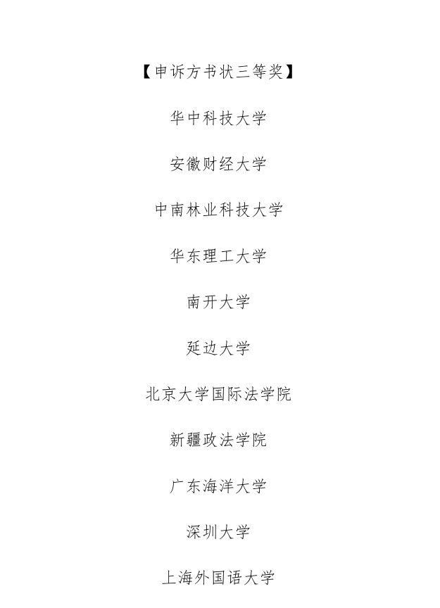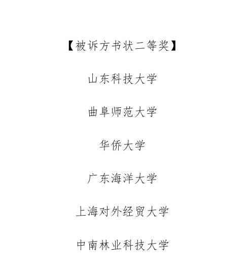代表队经过激烈的角逐,凭借高质量的书状以及精彩的庭辩表现,最终荣获团体三等奖;同时,在单项奖评选中,我校代表队斩获被诉方最佳书状二等奖以及申诉方最佳书状三等奖的优异成绩。