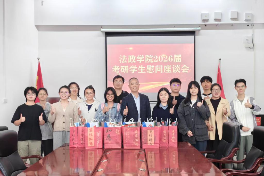在博文楼A405会议室举办2026届考研学生慰问座谈会。学院党委副书记黄善、各专业辅导员及考研学生代表齐聚一堂,共同传递温暖与力量。